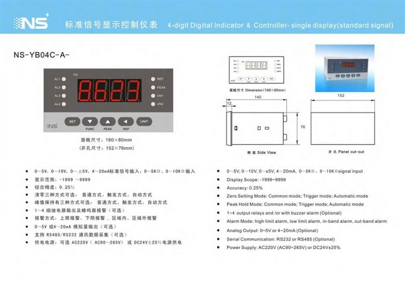 Signal input : 0~5V;4~20mA;0~5kΩ