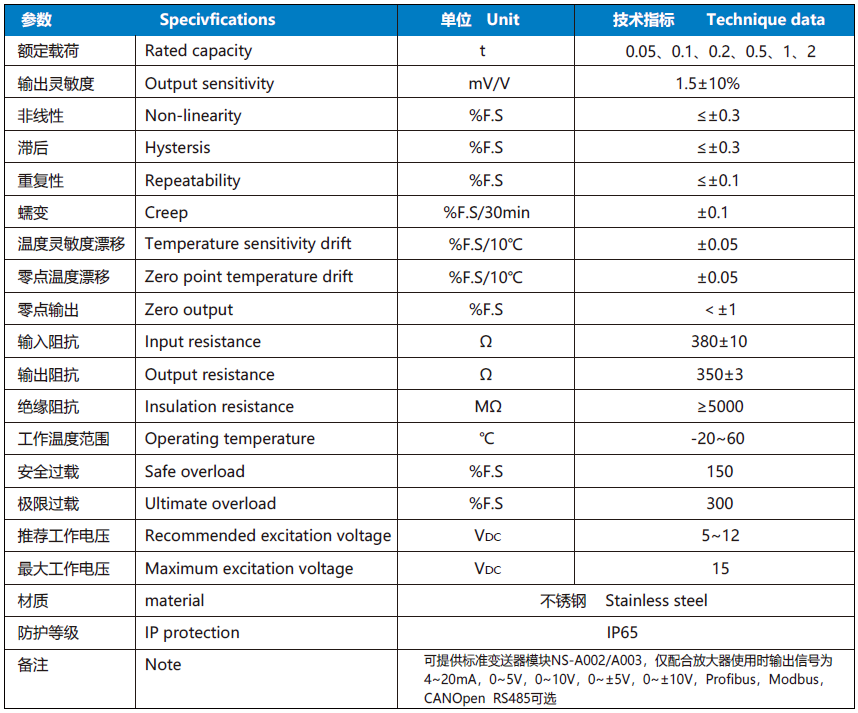 NS-WL1 系列傳感器采用 S 型剪切結構;