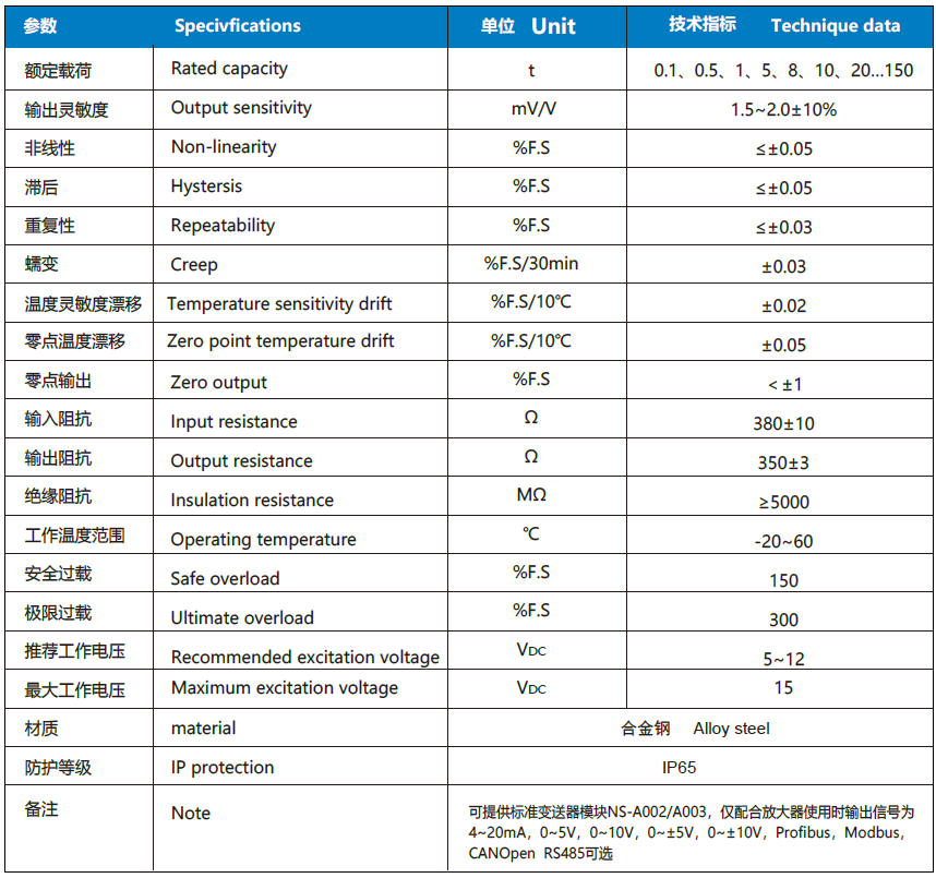NS-WL2系列傳感器采用柱型剪切結(jié)構(gòu);
