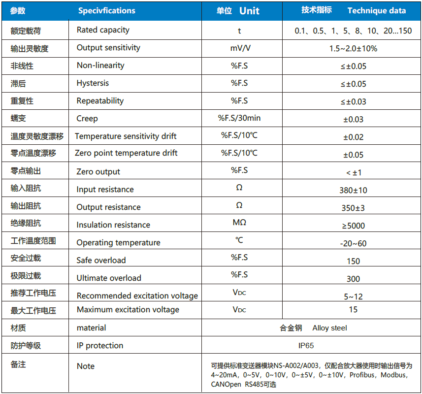 NS-WL2系列傳感器采用柱型剪切結(jié)構(gòu);