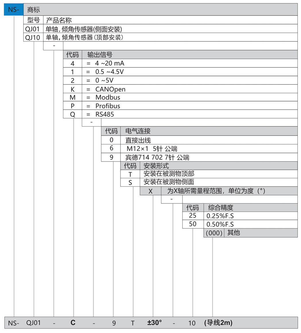 NS-QJ01系列單軸,傾角傳感器