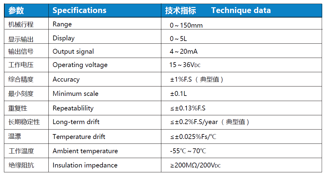溫差極小,零點溫度補償≤ ± 0.008 % F.S/℃ typ.