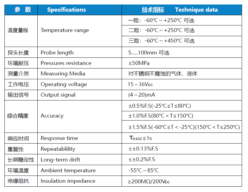 溫差極小,零點溫度補償≤ ± 0.008 % F.S/℃ typ.