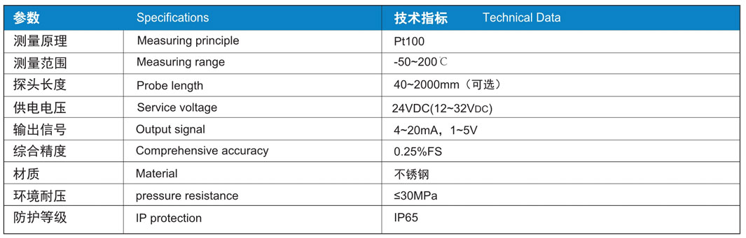 適宜于安裝在裝配式溫度傳感器無法滿足要求場合和環(huán)境比較惡劣的場合