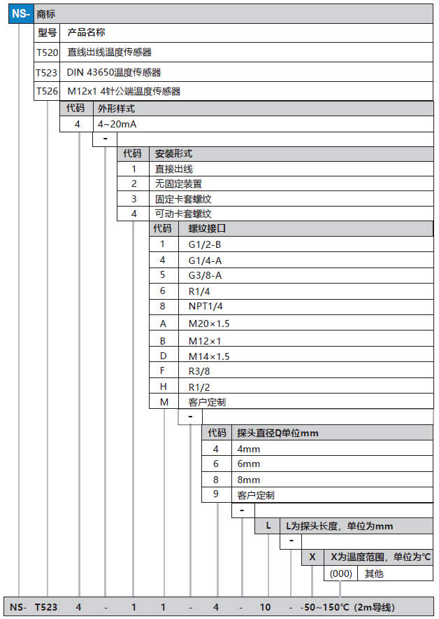 NS-T53 系列 鎧裝式,溫度傳感器
